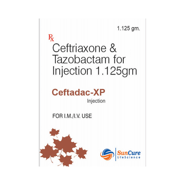 Ceftadac-XP Injection helps treat infections that are caused by bacteria. It contains two medicines, Ceftriaxone, and Tazobactum. Ceftriaxone stops the growth of infection-causing bacteria. Tazobactum enhances the activity of Ceftriaxone against the bacteria as well as reduces resistance of the bacteria to the antibiotic. This medicine usually makes you feel better within a few days, but you should continue taking it as prescribed even when you feel better to make sure that all the infectious bacteria are killed and do not become resistant.