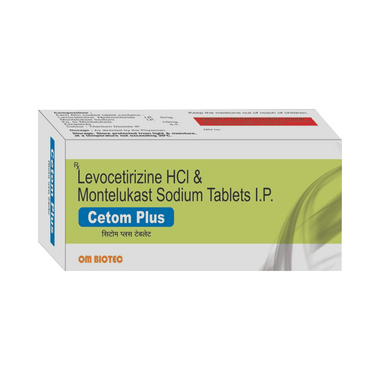 Cetom Plus Tablet is a medicine that provides relief from symptoms such as a blocked or runny nose, sneezing, and itchy or watery eyes. This will make it easier for you to go about your daily activities. It rarely has any serious side effects, and you may only need to take it on days you have symptoms. If you are taking it to prevent getting symptoms, you should use it regularly to get the most benefit.