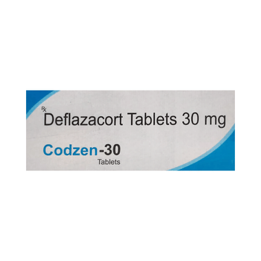 Codzen 30 Tablet works by inhibiting the release of substances that cause swelling or by changing how the immune system works. It can be taken on an empty stomach or after food. Taking the medicine regularly at the right times increases its effectiveness. It is important to keep taking the medicine regularly until your doctor tells you it is safe to stop.