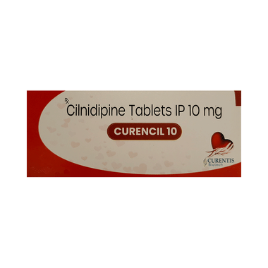 Curencil 10 Tablet is a calcium channel blocker. It works by relaxing the blood vessels so that blood can flow more easily around your body. This lowers your blood pressure and reduces your risk of having a stroke, a heart attack, or kidney problems in the future. You do not usually feel any direct benefit from taking this medicine, but it works in the long term to keep you well. Take it regularly, as prescribed, for this medicine to be most effective, even if you feel better.