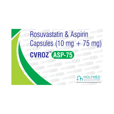 Before taking Cvroz ASP 75 Capsule, inform your doctor if you have liver or kidney disease, bleeding disorders, or any history of muscle problems. Also, tell your doctor if you are pregnant, planning to become pregnant, or breastfeeding. Let your healthcare team know about all other medicines you are taking, as some may interact with Cvroz ASP 75 Capsule and affect its action.