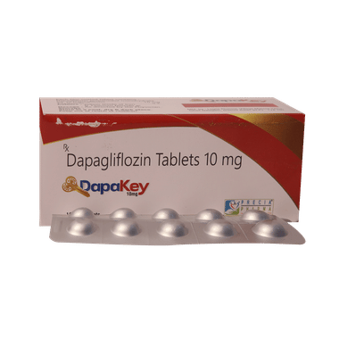 Dapakey 10mg Tablet is a medicine that helps to control high blood glucose (sugar) levels. It helps get rid of extra glucose from your body through urine. Lowering blood glucose levels is an essential part of managing diabetes. If you can control the level, you will reduce the risk of getting any of the serious complications of diabetes, such as kidney damage, eye damage, nerve problems, and loss of limbs. Taking this medicine regularly along with a proper diet and exercise will help you live a normal, healthy life. You should keep using it for as long as it is prescribed because it is protecting your future health.