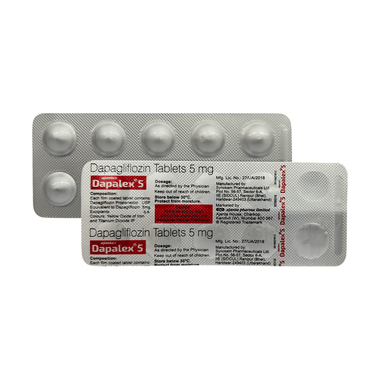 Dapalex 5mg Tablet is a medicine that helps to control high blood glucose (sugar) levels. It helps get rid of extra glucose from your body through urine. Lowering blood glucose levels is an essential part of managing diabetes. If you can control the level, you will reduce the risk of getting any of the serious complications of diabetes, such as kidney damage, eye damage, nerve problems, and loss of limbs. Taking this medicine regularly along with a proper diet and exercise will help you live a normal, healthy life. You should keep using it for as long as it is prescribed because it is protecting your future health.