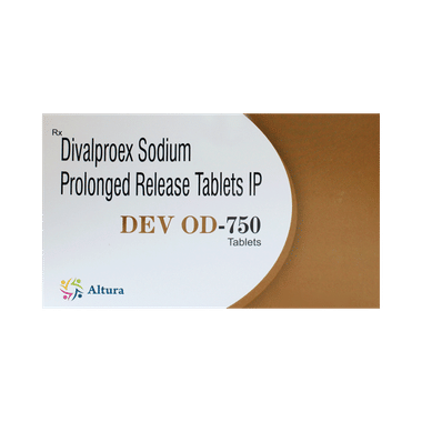 DEV OD 750 Tablet is an anticonvulsant (or anti-epileptic) medicine that works by decreasing the nerve impulses which cause the seizures. By controlling the frequency of seizures, it will help you go about your daily activities with more confidence. It helps reduce symptoms such as confusion, uncontrollable jerking movements, loss of awareness, and fear or anxiety.