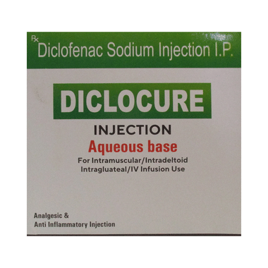 Diclocure Injection is a pain-relieving medicine. It is used to treat various types of pain, swelling, stiffness, and joint pain in conditions like rheumatoid arthritis, osteoarthritis, and acute musculoskeletal injuries. It is given in cases where oral administration is not possible.