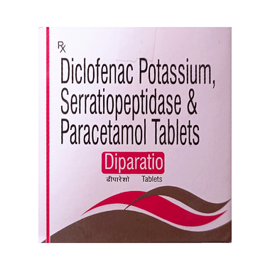Diparatio Tablet is a combination of medicines that is used for short term relief of pain, inflammation and swelling. It inhibits release of those chemical messengers in the brain that tell us that we have pain. It effectively relieves back pain, earache, throat pain, toothache, periods pain and pain due to arthritis too.