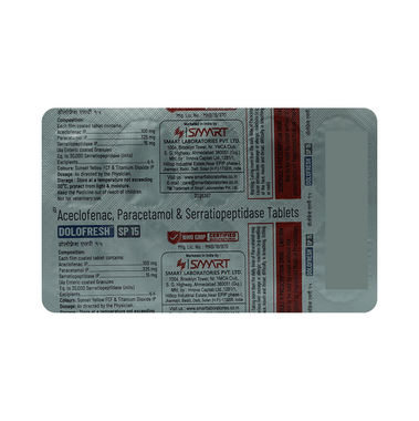 - Pain relief : Dolofresh SP 15 Tablet helps relieve acute pain in conditions such as muscle injuries, joint pain, dental pain, or pain after surgery.