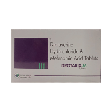Drotarix-M Tablet provides relief from pain caused by muscle spasms and inflammation, making it especially useful for menstrual pain (dysmenorrhea), cramp-like abdominal pain, biliary and urinary tract spasm-related pain, and tension-type headaches. It relaxes tight smooth muscles and reduces inflammation. This helps ease sharp, cramping pain and associated discomfort.