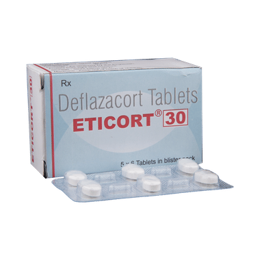Eticort 30 Tablet works by inhibiting the release of substances that cause swelling or by changing how the immune system works. It can be taken on an empty stomach or after food. Taking the medicine regularly at the right times increases its effectiveness. It is important to keep taking the medicine regularly until your doctor tells you it is safe to stop.