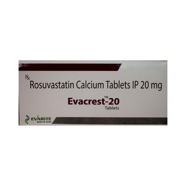 Evacrest 20 Tablet helps lower bad cholesterol (LDL) in the blood, which prevents fat from building up in the arteries. This keeps blood vessels clear and reduces the risk of heart problems like heart attacks and strokes. It also slightly increases good cholesterol (HDL), which helps remove bad cholesterol from the body.