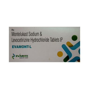 Evamont-L Tablet is a medicine that provides relief from symptoms such as a blocked or runny nose, sneezing, and itchy or watery eyes. This will make it easier for you to go about your daily activities. It rarely has any serious side effects, and you may only need to take it on days you have symptoms. If you are taking it to prevent getting symptoms, you should use it regularly to get the most benefit.