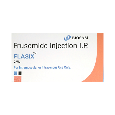 Flasix Injection 2ML helps your body get rid of extra water and salt through urine. It is commonly used to treat people with excess fluid build-up due to heart failure, liver or kidney disease. It is injected into a vein under the supervision of a doctor. Your doctor may monitor your blood pressure after giving this medicine.