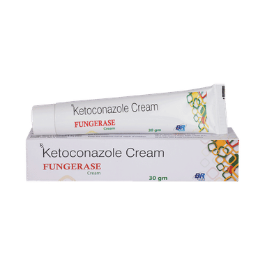 Fungerase 2% Cream is an antifungal medicine that treats skin infections caused by fungi. It works by killing the fungi and stopping their growth, helping to clear the infection and relieve symptoms like itching, redness, and scaling. For best results, use this medicine for the full prescribed duration, even if your symptoms improve, to prevent the infection from returning. Depending on the infection, treatment may take several weeks. In some cases, occasional application may be needed even after the infection clears to prevent recurrence.