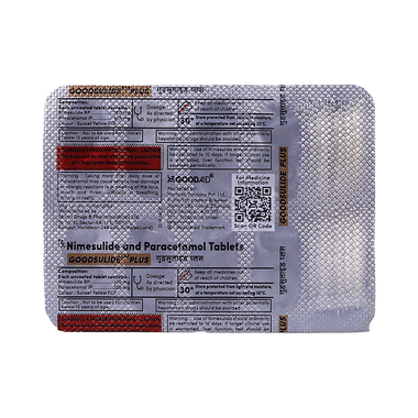 Goodsulide Plus Tablet is a combination of two medicines that belong to a group of medicines called nonsteroidal anti-inflammatory drugs (NSAIDs). It is used for short-term relief of pain, inflammation, and swelling in conditions that affect joints and muscles. It works by blocking chemical messengers in the brain that tell us we have pain. It can help relieve pain in conditions like rheumatoid arthritis and osteoarthritis.
