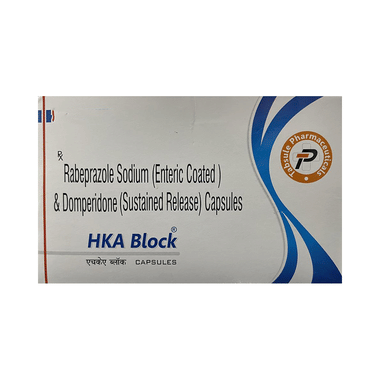 Gastroesophageal reflux disease (GERD) is a chronic (long-term) condition in which there is an excess production of acid in the stomach. HKA Block Capsule SR reduces the amount of acid your stomach makes and relieves the pain associated with heartburn and acid reflux. You should take it exactly as it is prescribed for it to be effective. Some simple lifestyle changes can help reduce the symptoms of GERD. Think about what foods trigger heartburn and try to avoid them; eat smaller, more frequent meals; try to lose weight if you are overweight, and try to find ways to relax. Do not eat within 3-4 hours of going to bed.