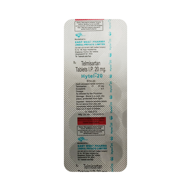 Hytel 20 Tablet can be prescribed either alone or in combination with other medicines. It can be taken with or without food, but take it at the same time every day to obtain effective results. It is important to continue taking it regularly even if you feel well or if your blood pressure is controlled. Most people with high blood pressure do not feel ill, but if you stop taking this medicine, your condition could get worse. This is a widely used medicine and is considered safe for long-term use.