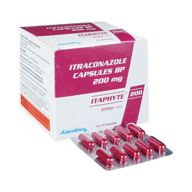 Itaphyte 200 Capsule is an antifungal medicine. It is used to treat infections in different parts of the body caused by fungi. It works by killing and stopping the growth of fungi. This provides relief from various symptoms caused by the infection and speeds up the healing process. You should keep taking the medicine until you complete the dose even if you get better. This will prevent the infection from returning.