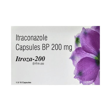 Itroza 200 Capsule is an antifungal medicine. It is used to treat infections in different parts of the body caused by fungi. It works by killing and stopping the growth of fungi. This provides relief from various symptoms caused by the infection and speeds up the healing process. You should keep taking the medicine until you complete the dose even if you get better. This will prevent the infection from returning.