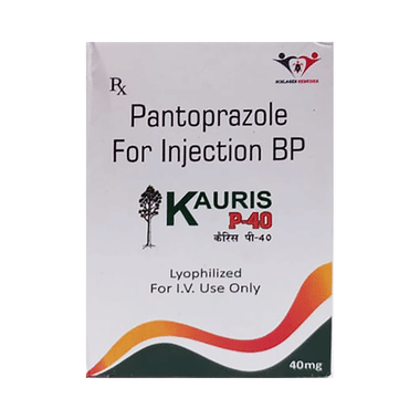 Kauris P 40 Injection is also used to prevent stress ulcers in seriously ill patients and is administered before anesthetic medication to help prevent aspiration-related complications. It belongs to a class of medicines known as proton pump inhibitors (PPIs). This medicine is administered into a vein by a healthcare professional and will only be given to you if your doctor thinks that an injection is more suitable for you at the moment than a tablet. The dose will depend on your underlying condition and how you respond to the medicine. Your doctor will decide the duration of treatment but you should keep on taking it as prescribed, even if your symptoms disappear quickly. You can increase the efficiency of the treatment by eating smaller meals more often and avoiding caffeinated drinks (like tea and coffee), and spicy or fatty foods.