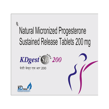Kdgest SR 200 Tablet contains progesterone, a female hormone that is important in the regulation of ovulation and menstruation. It is used to cause menstrual periods in women who have not reached menopause but are not having periods due to a lack of natural progesterone in the body. This medicine helps to prepare the uterus for pregnancy by causing the uterus lining (endometrium) to thicken. This increases the chance of a successful pregnancy. You should use the medicine as prescribed for it to be effective. You may be asked to continue with this treatment for a period after becoming pregnant.