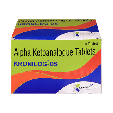 Kronilog-DS Tablet is a nutritional supplement that helps manage chronic kidney disease (CKD). It is a condition where kidney function gradually declines over time. It helps maintain protein nutrition while reducing the buildup of harmful waste products in the body. When used along with a low-protein diet, it helps reduce the workload on the kidneys and slows disease progression. This supports better overall health and helps improve the quality of life in people with CKD.