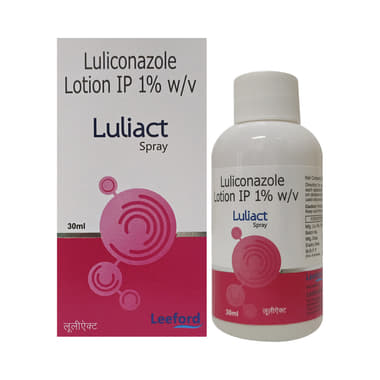 Luliact Spray is an antifungal medicine that kills the fungi causing the infection and helps relieve itching, redness, scaling, and discomfort. It is used to treat interdigital tinea pedis (athlete’s foot), tinea cruris (jock itch), and tinea corporis (ringworm). Using it as prescribed helps clear the infection and reduces the chance of recurrence, improving skin comfort.