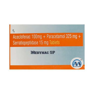 - Pain relief : Medynac SP Tablet helps relieve acute pain in conditions such as muscle injuries, joint pain, dental pain, or pain after surgery.