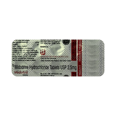 Midotril 2.5mg Tablet is used to treat low blood pressure (hypotension). It is used in patients who experience dizziness due to low blood pressure while standing up suddenly from a sitting or lying position. This medicine causes tightening of blood vessels and results in an elevation of your blood pressure.
