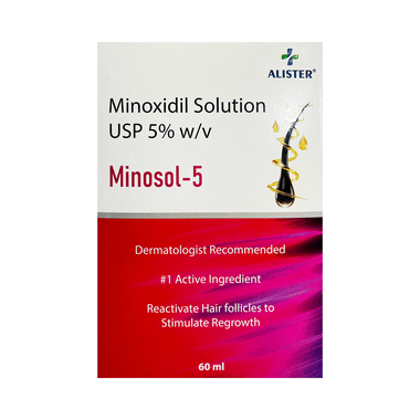 Minosol 5 Solution is a medicine used to treat common hereditary hair loss. It can prevent further hair loss and help hair to regrow. It works by increasing blood flow to the hair follicles on your scalp, which prevents hair cell death and also enhances new hair growth. It is most effective for baldness or thinning at the top of the scalp, but less effective at the front or for receding hairline.