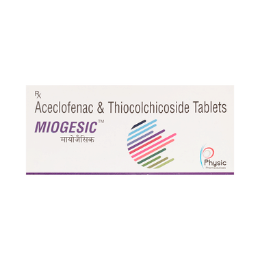 Miogesic Tablet is a combination medicine that contains a painkiller as well as a muscle relaxant. It is used to relieve pain, inflammation, and swelling in conditions that affect muscles. Also, it effectively relieves muscle stiffness or spasm, thereby improving muscle movement. It works by blocking chemical messengers in the brain that tell us we have pain.