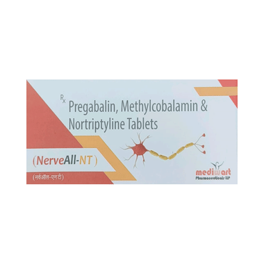 Nerveall-NT Tablet is a combination of medicines used to treat long-lasting (chronic) pain caused by nerve damage due to diabetes, shingles, or spinal cord injury. It reduces pain and its associated symptoms such as mood changes, sleep problems, and tiredness. It is thought to work by interfering with pain signals that travel through the damaged nerves and the brain. It also contains nutritional supplements that are essential for improving nerve conduction.