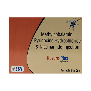 Nusure-Plus Injection is a combination of three nutritional supplements: Methylcobalamin, Niacinamide and Vitamin B6 (Pyridoxine), which replenishes the body's stores of important nutrients.