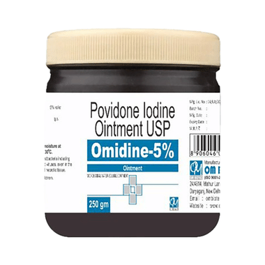 Omidine Ointment is a versatile antiseptic that is used for the treatment and prevention of infection. Omidine Ointment kills and prevents the growth of infection-causing microbes, thereby preventing abrasions, cuts, and wounds, or any break in the skin from getting infected. The antiseptic effect is caused by the slow release of iodine. Keep the affected area clean and use the medicine as prescribed by your doctor.