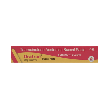 Oratrue Buccal Paste is used to treat oral inflammatory and ulcerative lesions caused by trauma. It reduces inflammation, swelling, and pain by suppressing the immune response, providing relief from symptoms. The paste forms a protective layer over the lesion, allowing longer contact with the medication for enhanced healing, making it particularly helpful for recurrent ulcers or irritation from dental work or biting.