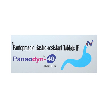 Pansodyn 40 Tablet is also used to prevent stomach ulcers and acidity that may be seen with the prolonged use of painkillers. It belongs to a class of medicines known as proton pump inhibitors (PPIs). This medicine should be taken one hour before a meal, preferably in the morning. The dose will depend on your underlying condition and how you respond to the medicine. You should keep on taking it as prescribed even if your symptoms disappear quickly. You can increase the efficiency of the treatment by eating smaller meals more often and avoiding caffeinated drinks (like tea and coffee), and spicy or fatty foods.