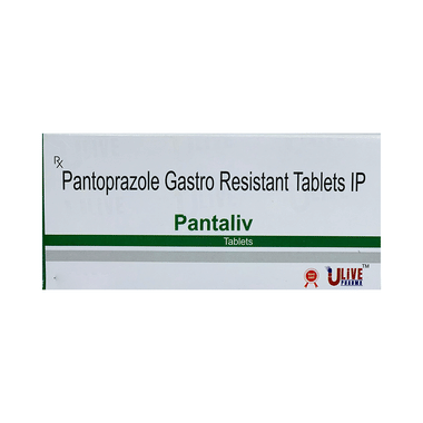Pantaliv Tablet is also used to prevent stomach ulcers and acidity that may be seen with the prolonged use of painkillers. It belongs to a class of medicines known as proton pump inhibitors (PPIs). This medicine should be taken one hour before a meal, preferably in the morning. The dose will depend on your underlying condition and how you respond to the medicine. You should keep on taking it as prescribed even if your symptoms disappear quickly. You can increase the efficiency of the treatment by eating smaller meals more often and avoiding caffeinated drinks (like tea and coffee), and spicy or fatty foods.
