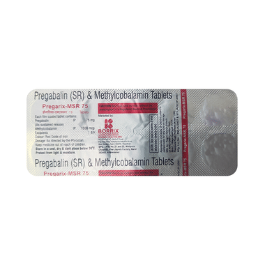Pregarix-MSR Tablet is a combination of medicines used to treat long-lasting (chronic) pain caused by nerve damage due to diabetes, shingles or spinal cord injury. It reduces pain and its associated symptoms such as mood changes, sleep problems, and tiredness. Pregabalin, an active ingredient of this medicine, is thought to work by interfering with pain signals that travel through the damaged nerves and the brain. It also contains nutritional supplements that improve nerve conduction. Taking Pregarix-MSR Tablet regularly will improve your physical and social functioning and overall quality of life.