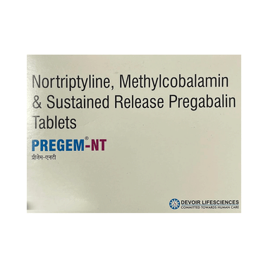 Pregem-NT Tablet SR is a combination of medicines used to treat long-lasting (chronic) pain caused by nerve damage due to diabetes, shingles, or spinal cord injury. It reduces pain and its associated symptoms such as mood changes, sleep problems, and tiredness. It is thought to work by interfering with pain signals that travel through the damaged nerves and the brain. It also contains nutritional supplements that are essential for improving nerve conduction.