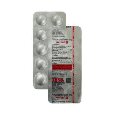 Prucone 2mg Tablet is taken with or without food in a dose and duration as advised by the doctor. The dose you're given will depend on your condition and how you respond to the medicine. You should keep taking this medicine for as long as your doctor recommends. If you stop treatment too early, your symptoms may come back, and your condition may worsen. Let your doctor know about all other medications you are taking, as some may affect, or be affected by, this medicine.