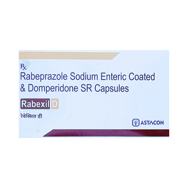 Rabexil D Capsule SR should be taken on an empty stomach in the dose and duration advised by your doctor. The exact dose will depend on your condition and response to treatment. Continue taking it for as long as prescribed, even if your symptoms improve, as stopping early may cause them to return or worsen. Inform your healthcare provider about all other medicines you are taking, as some may interact with Rabexil D Capsule SR.