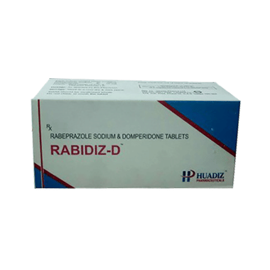 Gastroesophageal reflux disease (GERD) is a chronic (long-term) condition in which there is an excess production of acid in the stomach. Rabidiz-D Tablet reduces the amount of acid your stomach makes and relieves the pain associated with heartburn and acid reflux. You should take it exactly as it is prescribed for it to be effective. Some simple lifestyle changes can help reduce the symptoms of GERD. Think about what foods trigger heartburn and try to avoid them; eat smaller, more frequent meals; try to lose weight if you are overweight, and try to find ways to relax. Do not eat within 3-4 hours of going to bed.