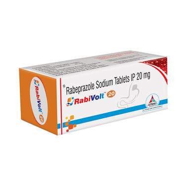 Rabivolt 20 Tablet medicine should be taken one hour before a meal, preferably in the morning. The dose will depend on your underlying condition and how you respond to the medicine. Try to take it regularly at the same time each day as advised by your doctor. You should keep on taking it as prescribed even if your symptoms disappear quickly. You may be able to help improve your symptoms by eating smaller meals more often and avoiding caffeinated drinks like tea and coffee, and spicy or fatty foods.