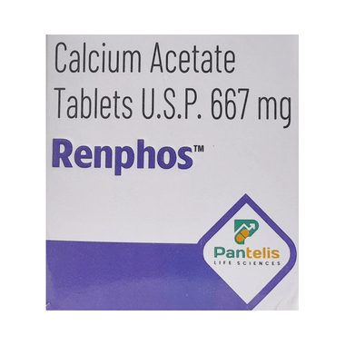 Our body needs phosphate for various life functions such as strengthening of bones and teeth, production of energy and forming outer layers of cells in our body called cell membrane. But too much phosphate in our blood can cause serious complications such as heart attack, stroke as well as kidney damage. Renphos Tablet helps to lower the phosphate levels in our blood and prevents these complications particularly in patients who are on dialysis and are unable to get rid of excess phosphate levels through kidneys. Take Renphos Tablet as prescribed by the doctor to get the most of this medicine.