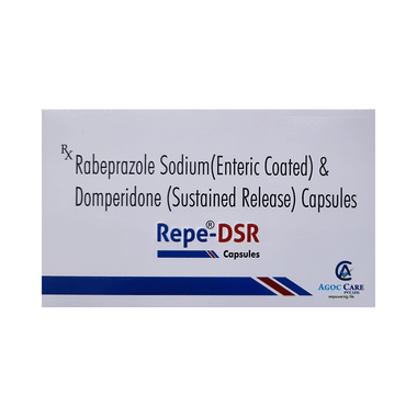 Gastroesophageal reflux disease (GERD) is a chronic (long-term) condition in which there is an excess production of acid in the stomach. Repe-DSR Capsule reduces the amount of acid your stomach makes and relieves the pain associated with heartburn and acid reflux. You should take it exactly as it is prescribed for it to be effective. Some simple lifestyle changes can help reduce the symptoms of GERD. Think about what foods trigger heartburn and try to avoid them; eat smaller, more frequent meals; try to lose weight if you are overweight, and try to find ways to relax. Do not eat within 3-4 hours of going to bed.
