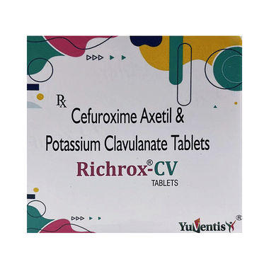 Richrox-CV Tablet contains two different medicines, Cefuroxime and Clavulanic Acid, that work together to kill the bacteria that cause infections. Cefuroxime works by stopping the growth of bacteria. Clavulanic Acid reduces resistance and enhances the activity of Cefuroxime against bacteria.