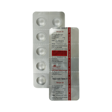 Rosopic 20mg Tablet helps lower bad cholesterol (LDL) in the blood, which prevents fat from building up in the arteries. This keeps blood vessels clear and reduces the risk of heart problems like heart attacks and strokes. It also slightly increases good cholesterol (HDL), which helps remove bad cholesterol from the body.