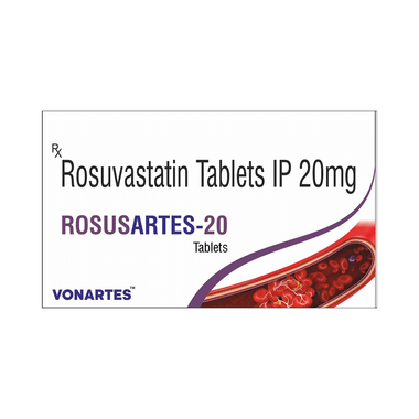 Rosusartes 20 Tablet helps lower bad cholesterol (LDL) in the blood, which prevents fat from building up in the arteries. This keeps blood vessels clear and reduces the risk of heart problems like heart attacks and strokes. It also slightly increases good cholesterol (HDL), which helps remove bad cholesterol from the body.