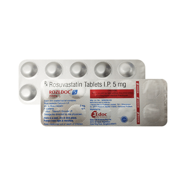 Rozedoc 5mg Tablet helps lower bad cholesterol (LDL) in the blood, which prevents fat from building up in the arteries. This keeps blood vessels clear and reduces the risk of heart problems like heart attacks and strokes. It also slightly increases good cholesterol (HDL), which helps remove bad cholesterol from the body.