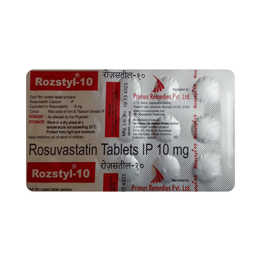 Rozstyl 10 Tablet helps lower bad cholesterol (LDL) in the blood, which prevents fat from building up in the arteries. This keeps blood vessels clear and reduces the risk of heart problems like heart attacks and strokes. It also slightly increases good cholesterol (HDL), which helps remove bad cholesterol from the body.