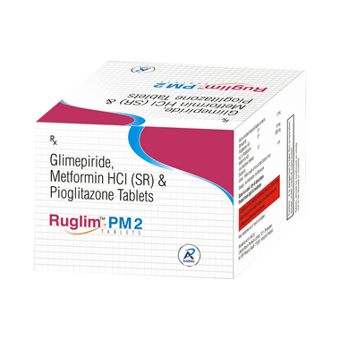 Type 2 diabetes is a condition where the body either does not produce enough insulin or cannot use it properly, leading to high blood sugar levels. Ruglim PM 2 Tablet SR helps improve blood sugar control by supporting better use of insulin and reducing excess glucose levels in the body. It helps maintain more stable sugar levels throughout the day, lowers the risk of diabetes-related complications, and supports overall metabolic health when used along with a proper diet and lifestyle.